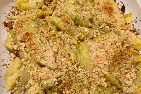 Roasted Artichoke Hearts with Cashew Crumble