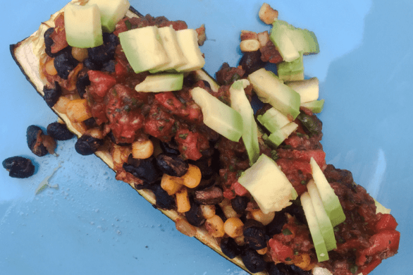 Tex-Mex Stuffed Zucchini with Homemade Salsa and Diced Avocado, CSA Week 7 July 31, 2018July 31, 2018