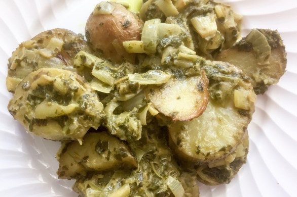 Baked New Potatoes with Cheesy Basil Sauce, CSA Week 5
