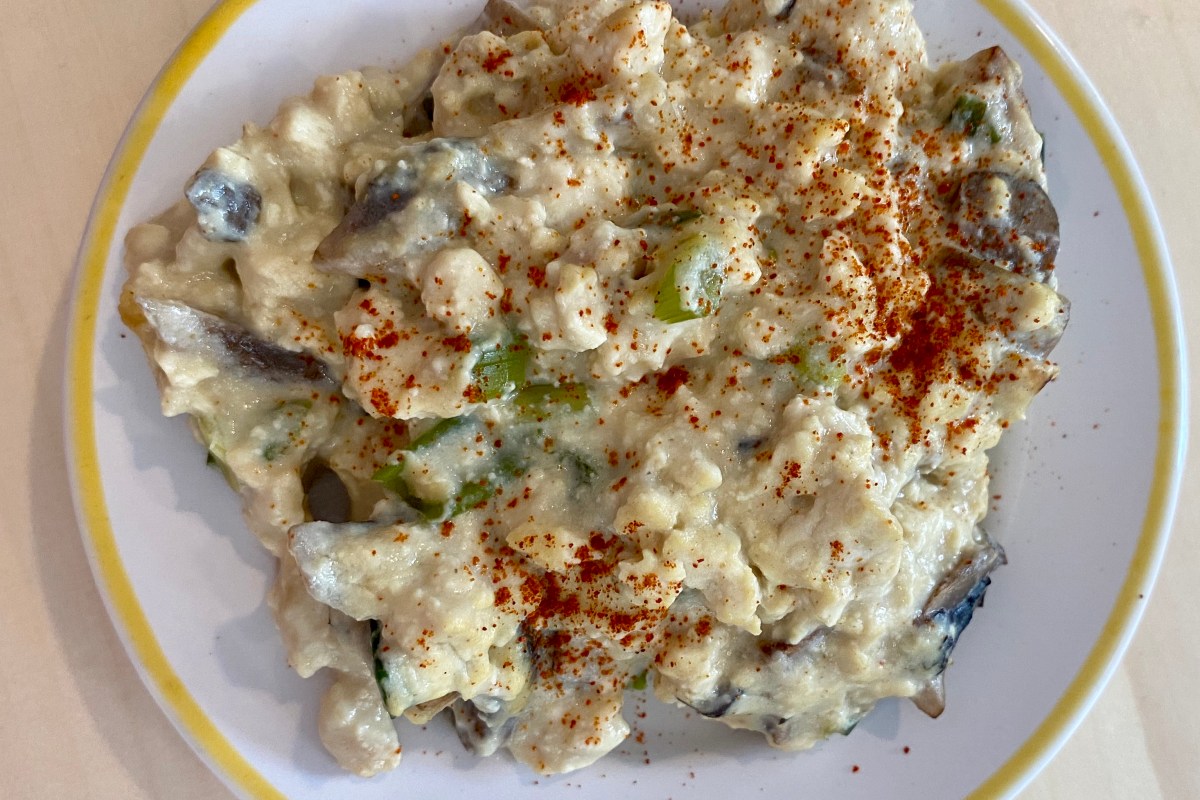 Vegan Scrambled Eggs with Mushroom and Scallions (oil-free)