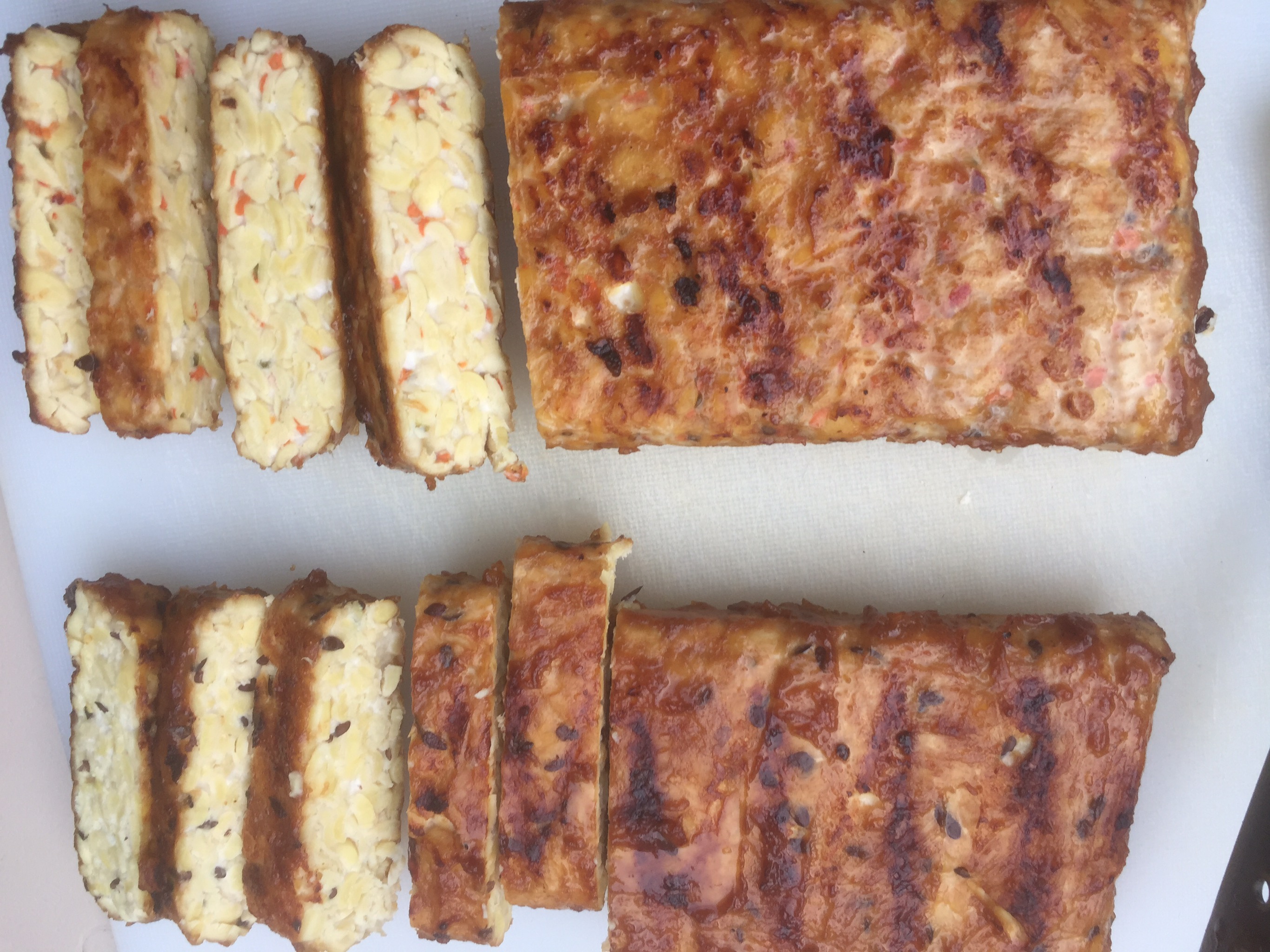 Let stand for just a moment or two, slice and serve!!! This Miso Glazed Grilled Tempeh will work as an appetizer, finger food, as well as dinner, especially with some grilled corn, veggies, coleslaw, baked or barbecue beans, or as a salad topping…
