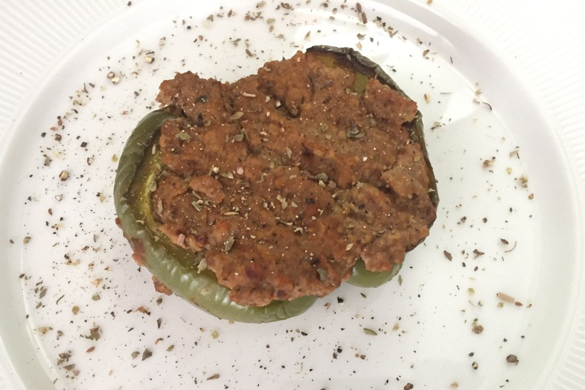 Nice, big bell peppers are perfect for stuffing, which makes them versatile. There are numerous types of stuffing you can choose from, and I’ve shared a couple in the past, like a simple rice based stuffing with pistachios, and one using a homemade beef substitute.