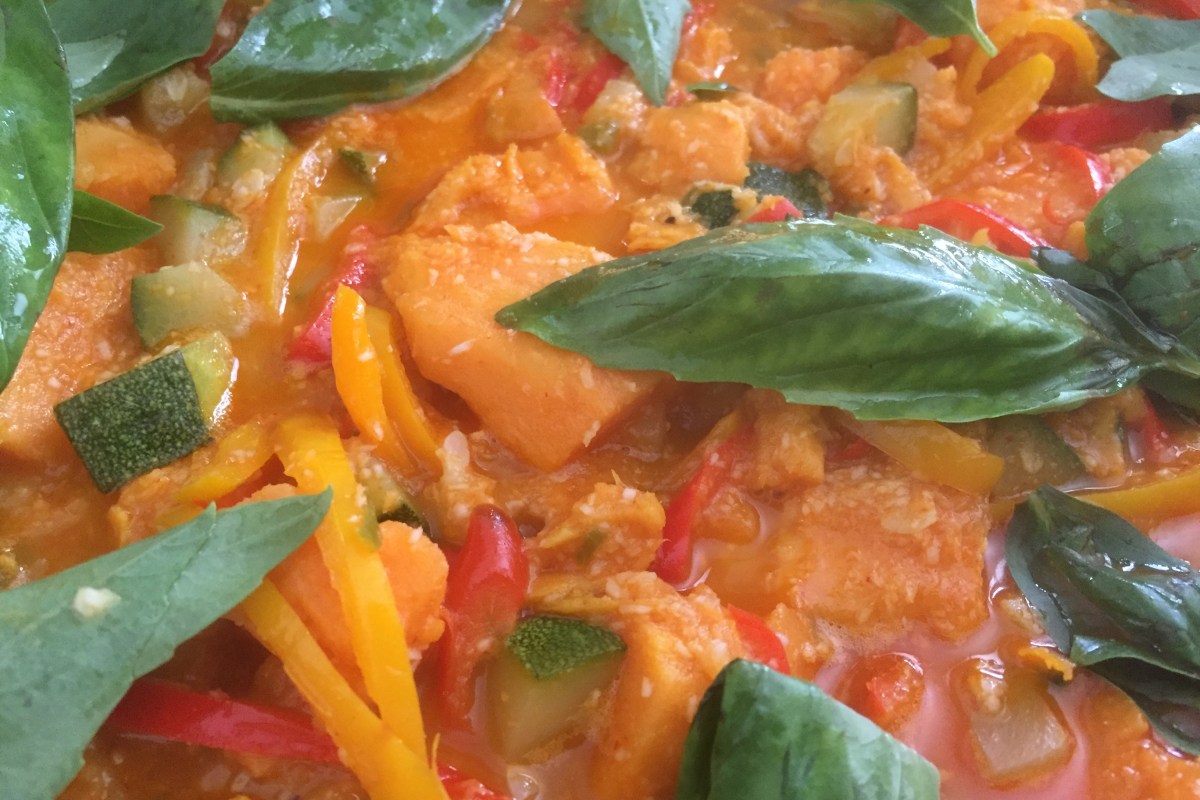 Vegan Red Curry with Sweet Potatoes and Zucchini