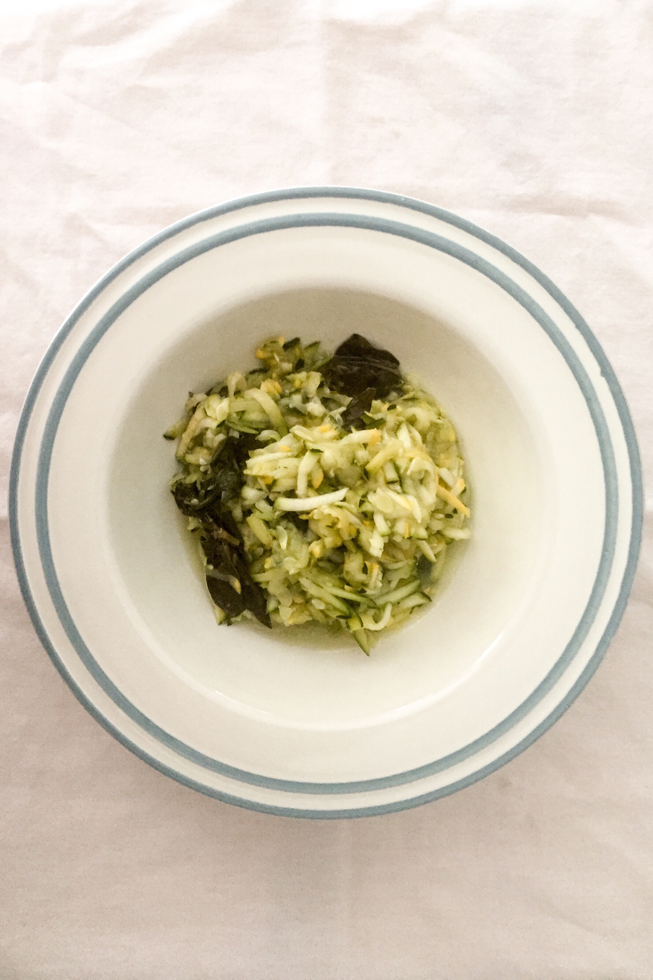 In Week 9, Upswing Farm share included some lovely zucchini and basil. So recipe here is a really easy and quick take on what to do when life gives you zucchini, summer squash (this one was from my garden), and lots of fresh basil.